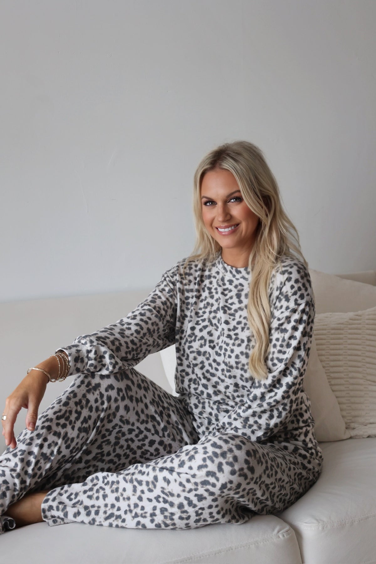 Laid-back, a little wild, and seriously soft. With a relaxed fit, elastic waistband, and allover leopard print, these brushed knit pants are made for lounging in style.
