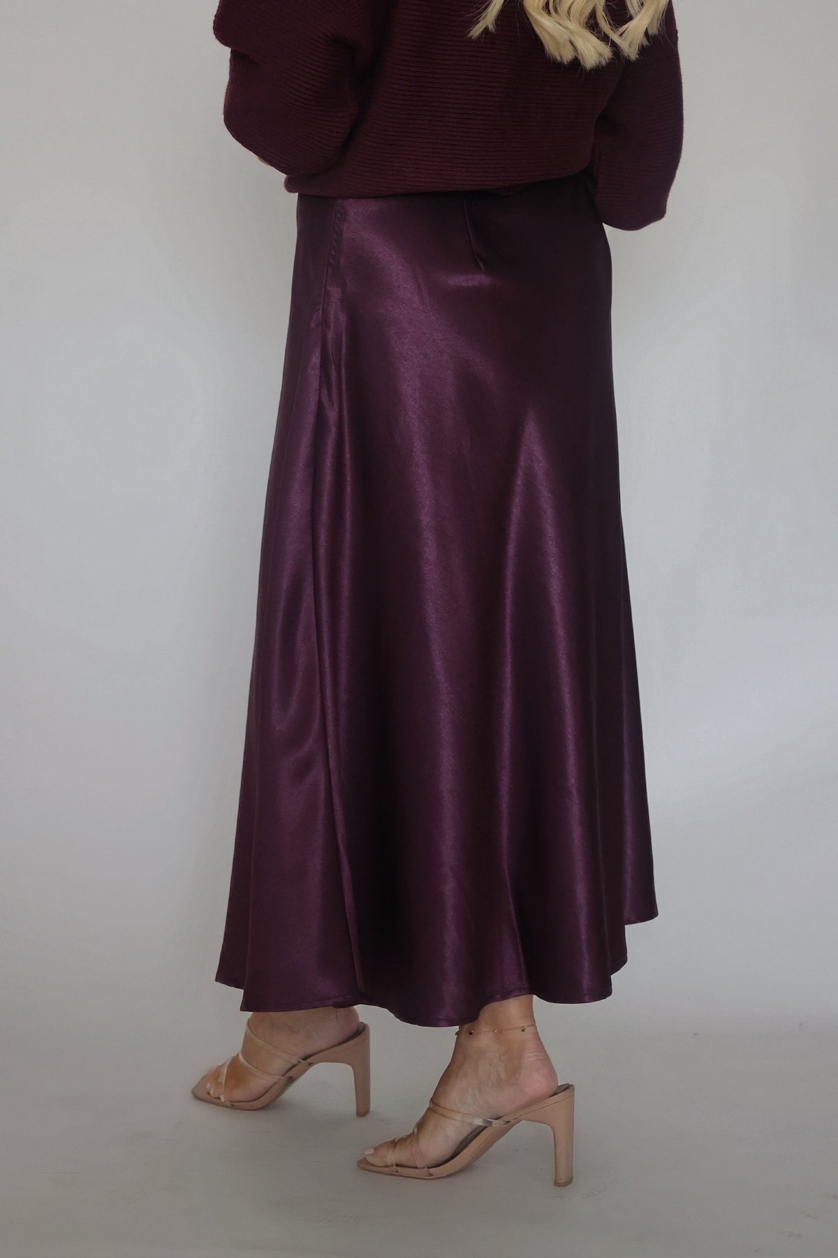Aspen Satin Midi Skirt - Dark Purple