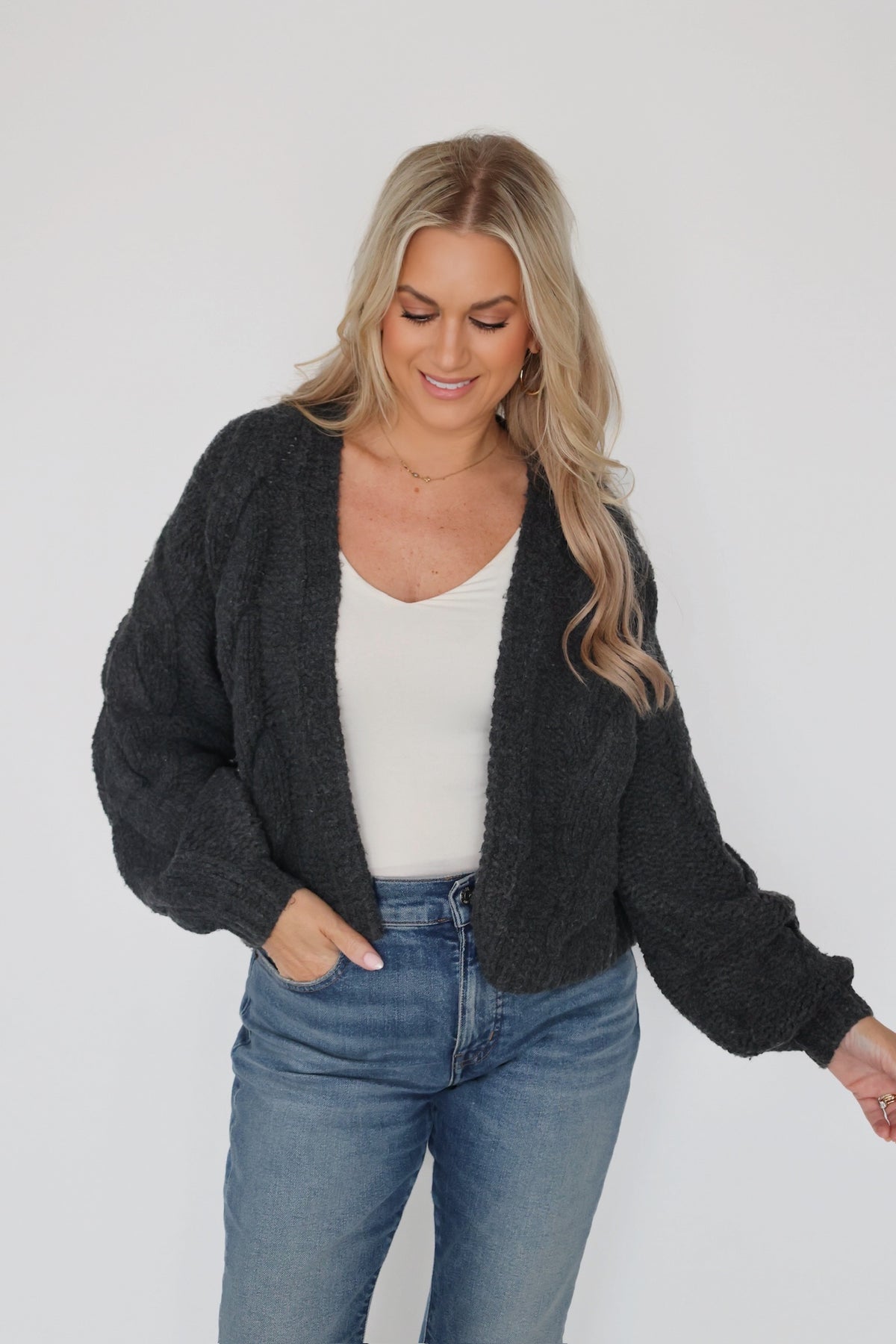 - Embrace a relaxed silhouette with this cable knit cardigan sweater, perfect for versatile styling. Featuring a loose fit, drop shoulders, it ensures comfort and stylish.
