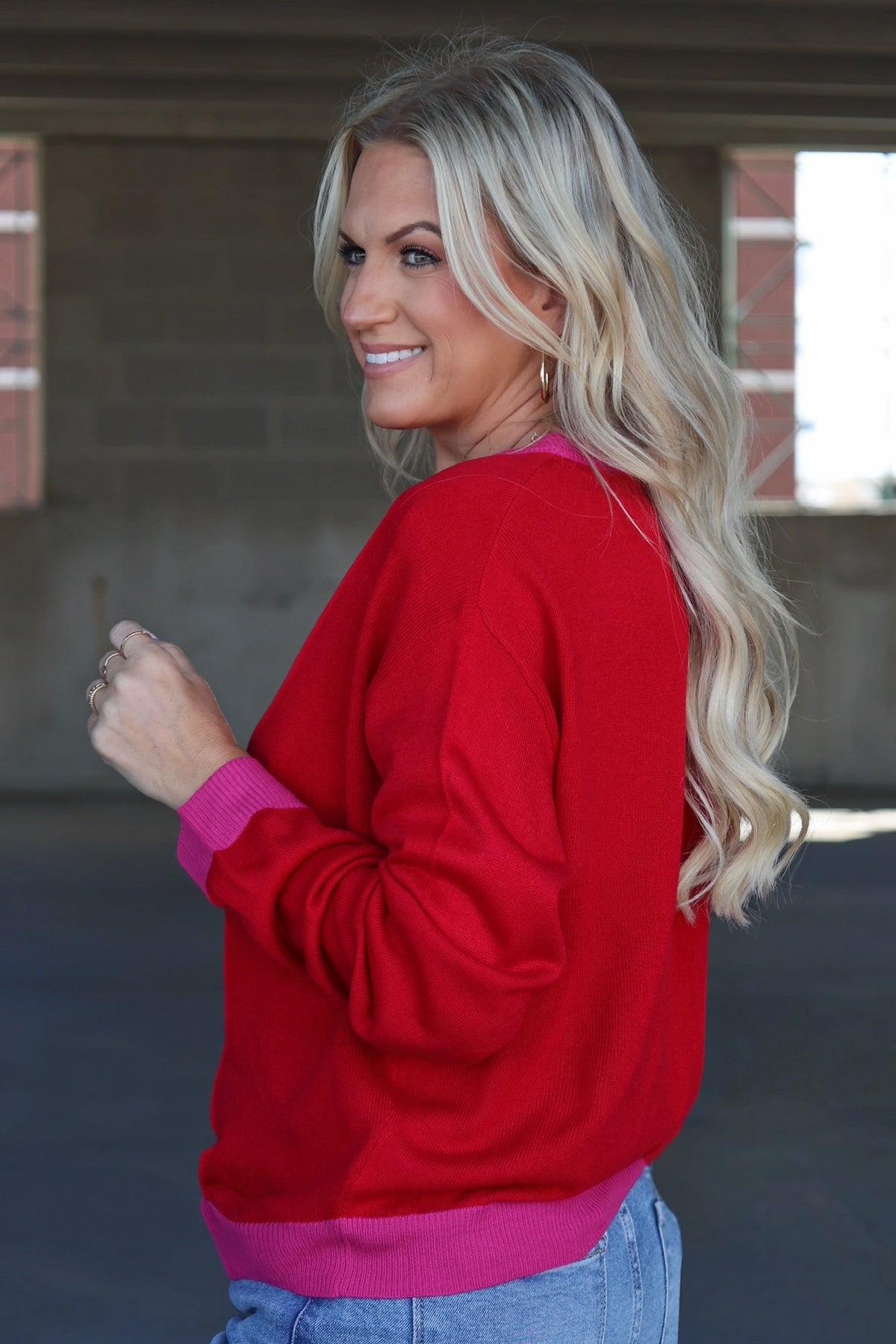 Add a pop of color and style to your wardrobe with this 2 Tone Sweater, designed with a bold contrast in hues for a modern, eye-catching look. The cozy knit fabric and relaxed fit make it perfect for layering or wearing solo during cooler months. A versatile piece that pairs well with jeans, skirts, or trousers for a chic, effortless vibe. Pair with your favorite bottoms for a stylish, casual look.