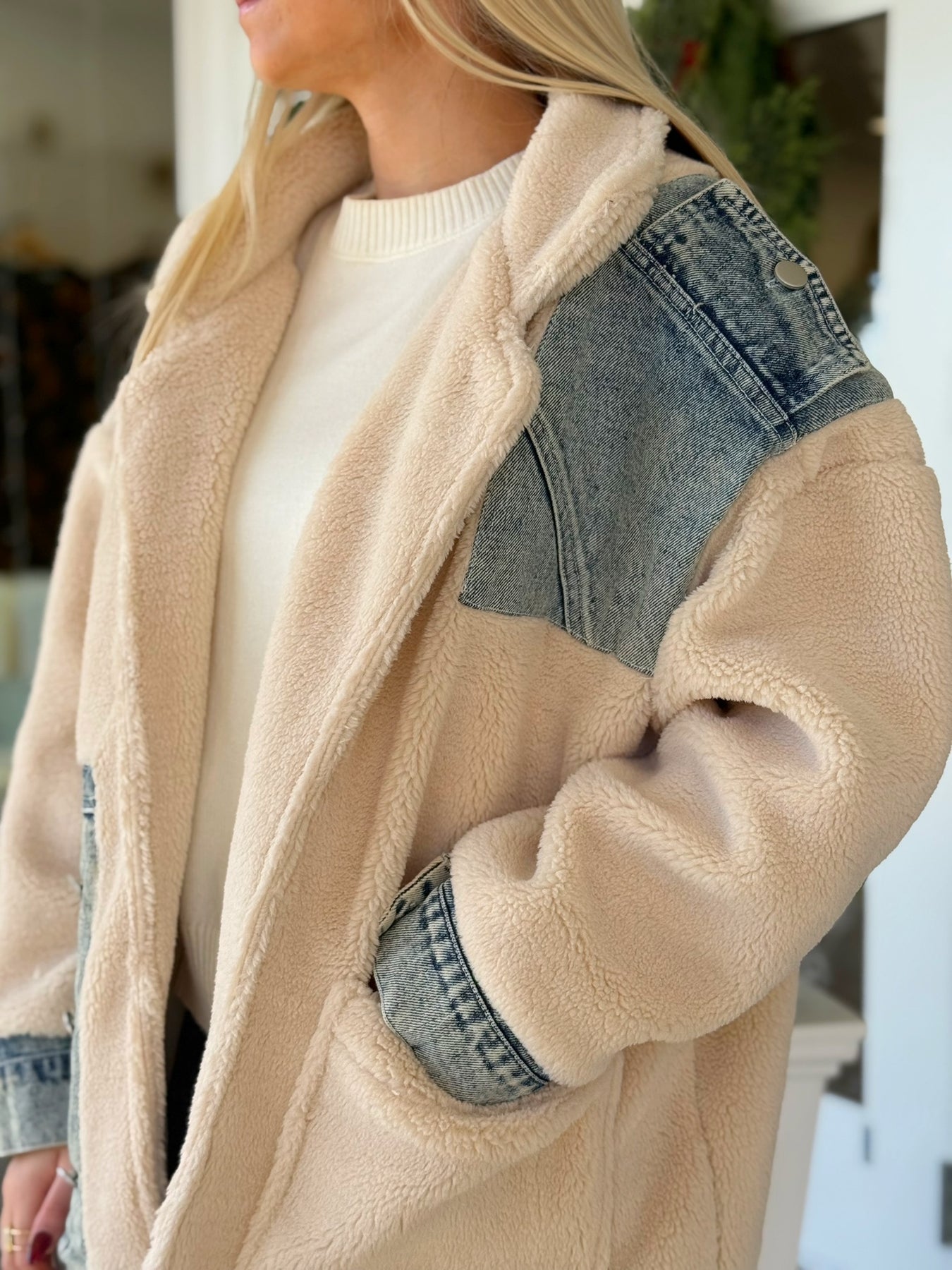 Our favorite jacket combo! Sherpa and denim mix makes the coolest jacket.