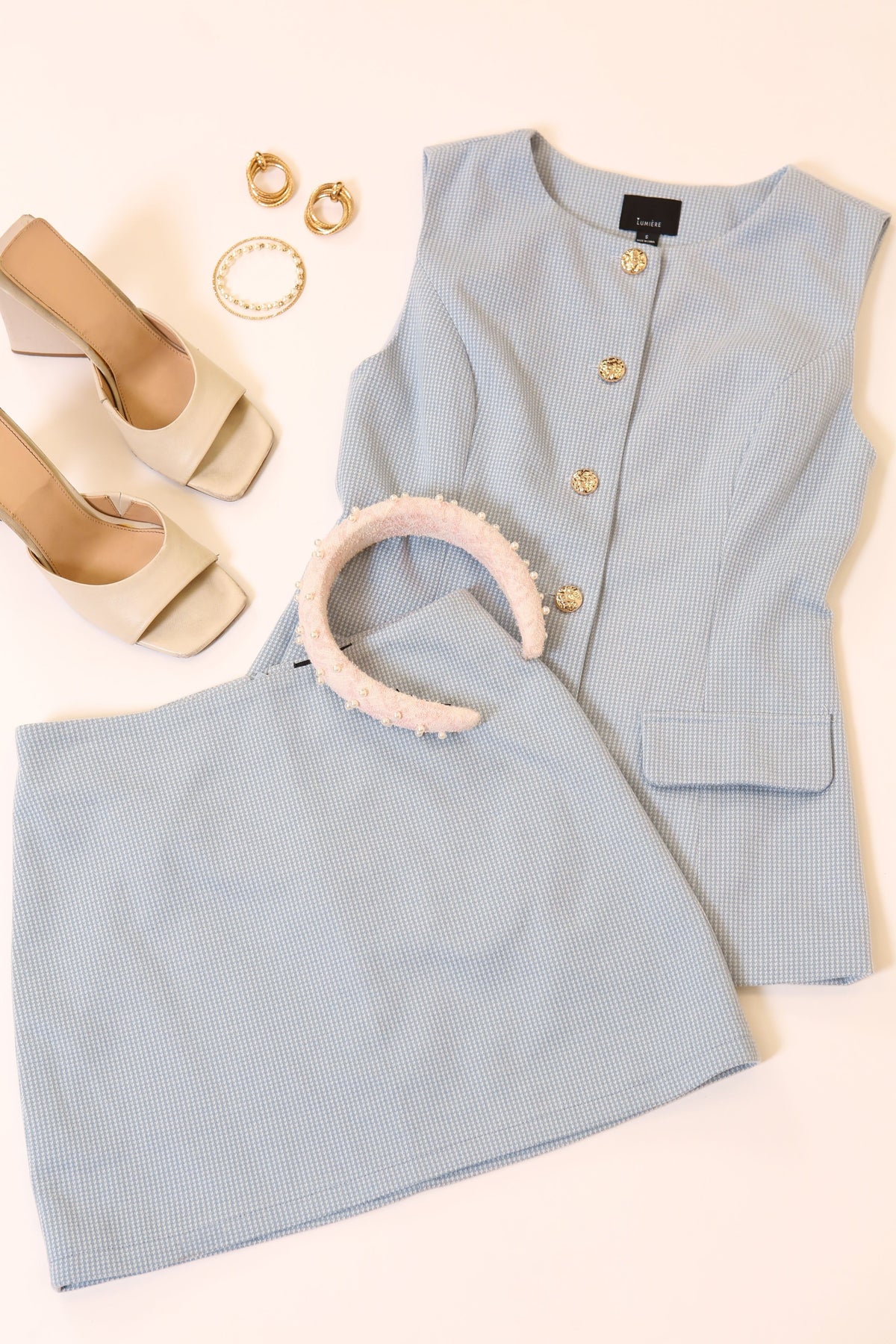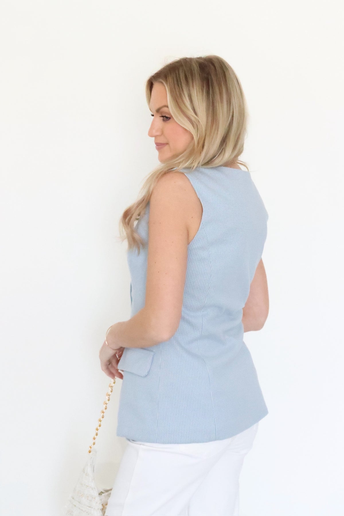 Polished and modern with a timeless feel, the Colette Tailored Button Vest Top is a refined wardrobe essential. Crafted from a structured woven fabric with subtle texture, this sleeveless top features a clean, tailored silhouette that flatters the figure. The round neckline and gold-tone statement buttons add an elevated touch, while faux flap pockets lend classic charm. Designed to wear alone or layered, this versatile piece transitions effortlessly from office-ready looks to chic everyday styling. Pair it with trousers, denim, or skirts for an instantly put-together outfit.