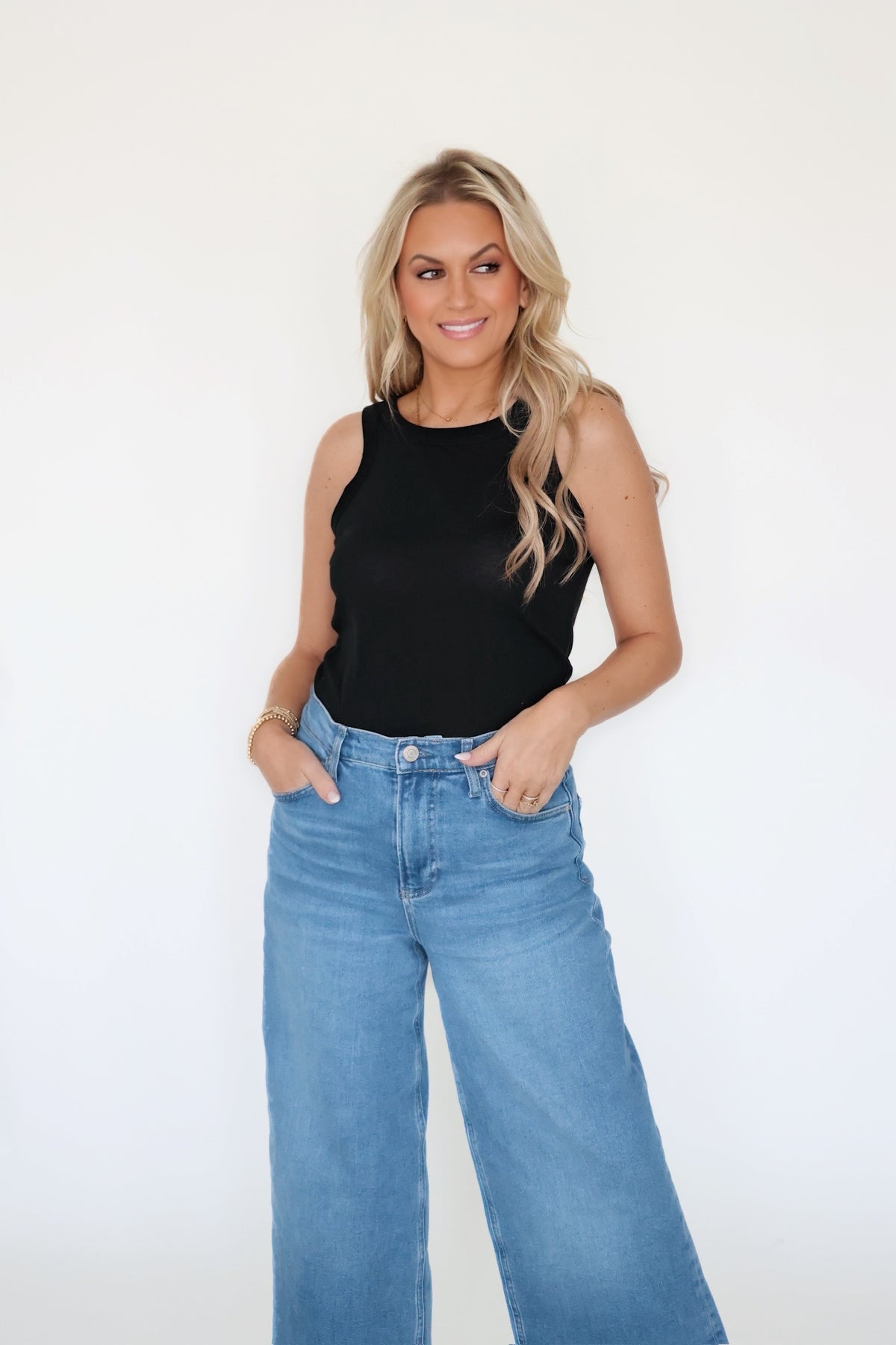 Laid-back and made for easy days, this relaxed tank is crafted from breathable loose knit jersey. With a classic crew neckline, bra-friendly wide straps, and a tuckable fit, it’s the kind of essential you’ll reach for on repeat.