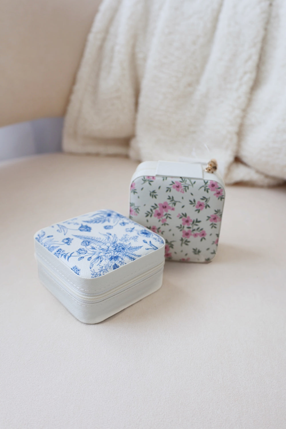 Organize your treasures with the Blue Blossom Jewelry Box. Featuring a charming floral toile design in timeless blue and white, this compact case keeps your jewelry safe and stylish. Perfect for home or travel, it’s a must-have for elegant storage. Material: PVC 100% Size: 3.75" x 3.75"Organize your treasures with the Blue Blossom Jewelry Box. Featuring a charming floral toile design in timeless blue and white, this compact case keeps your jewelry safe and stylish. Perfect for home or travel, it’s a must-have for elegant storage. Material: PVC 100% Size: 3.75" x 3.75"
