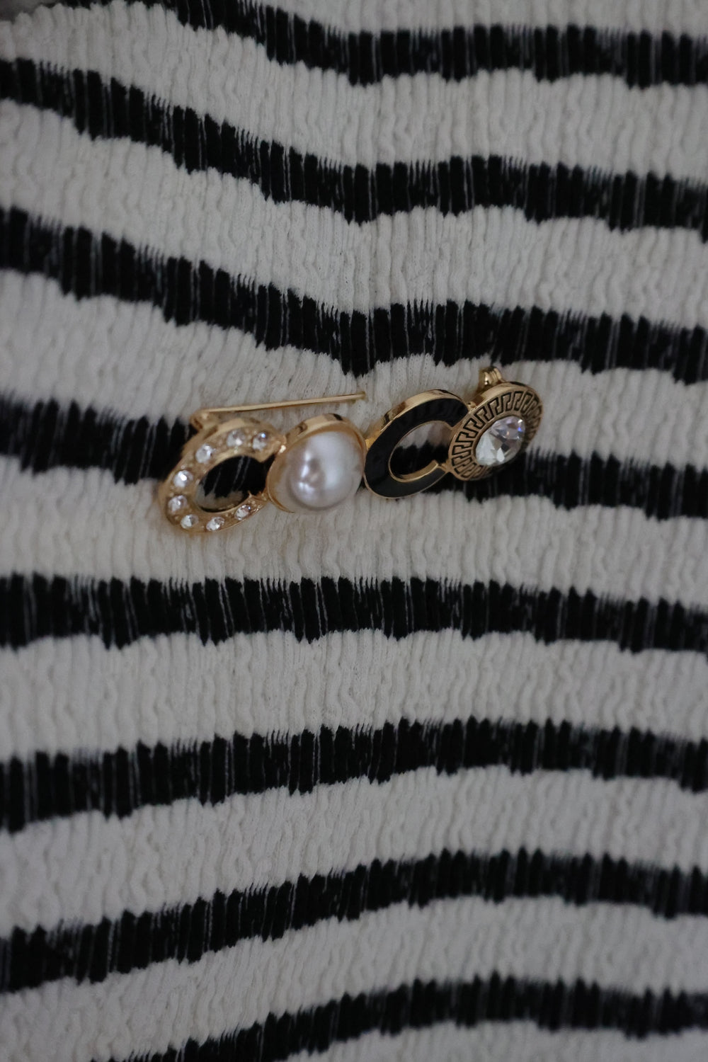 Metal with Rhinestone and Pearl COCO Charm Pin 3.5"(L)